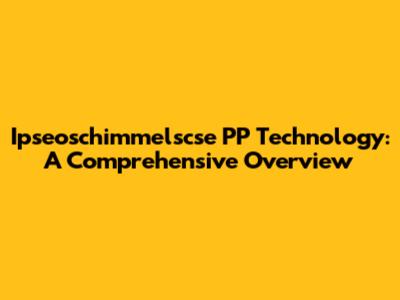 Ipseoschimmelscse PP Technology: A Comprehensive Overview