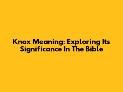 Knox Meaning: Exploring Its Significance In The Bible