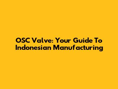 OSC Valve: Your Guide To Indonesian Manufacturing