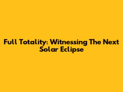 Full Totality: Witnessing The Next Solar Eclipse