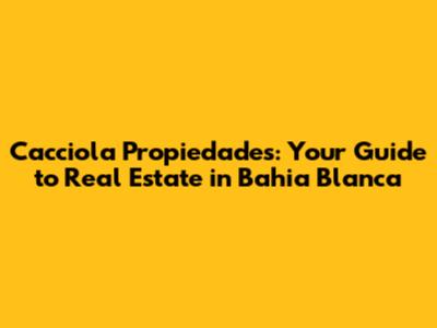 Are you searching for the perfect property in Bahia Blanca? Cacciola Propiedades can be your reliable partner in navigating the real estate market. Whether you're looking to buy, sell, rent, or invest, understanding the local landscape is crucial. This guide provides valuable insights into Cacciola Propiedades and the Bahia Blanca real estate scene.