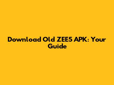 Download Old ZEE5 APK: Your Guide