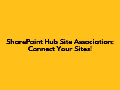 SharePoint Hub Site Association: Connect Your Sites!