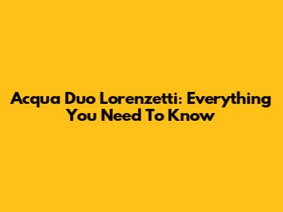 Acqua Duo Lorenzetti: Everything You Need To Know