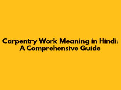 Hey guys! Ever wondered what carpentry work means in Hindi? If you're curious about the world of woodworking and want to understand the terminology in Hindi, you've come to the right place. This comprehensive guide will dive deep into the meaning of carpentry work in Hindi, exploring its various aspects, related terms, and significance. So, let's get started and unravel the fascinating world of carpentry!