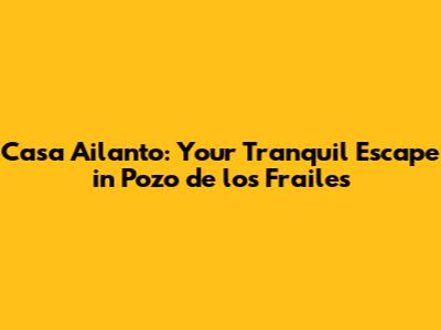 Welcome, guys! Are you dreaming of a getaway where tranquility meets charm? Look no further! Nestled in the heart of Pozo de los Frailes, Casa Ailanto offers an unforgettable experience. This isn't just a place to stay; it's a haven where you can unwind, reconnect with nature, and create lasting memories. Let's dive into what makes Casa Ailanto the perfect spot for your next vacation.