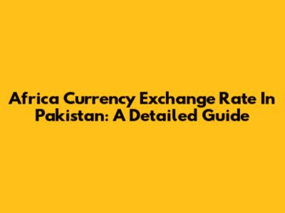 Africa Currency Exchange Rate In Pakistan: A Detailed Guide