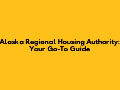 Alaska Regional Housing Authority: Your Go-To Guide