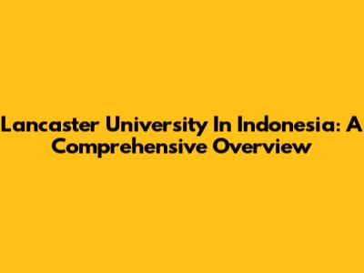 Lancaster University In Indonesia: A Comprehensive Overview
