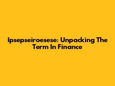 Ipsepseiroesese: Unpacking The Term In Finance