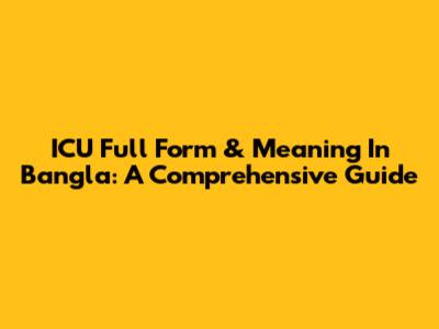 ICU Full Form & Meaning In Bangla: A Comprehensive Guide