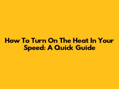 How To Turn On The Heat In Your Speed: A Quick Guide