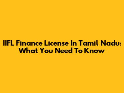 IIFL Finance License In Tamil Nadu: What You Need To Know