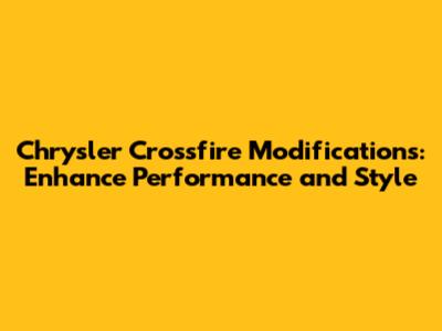 Modifying your Chrysler Crossfire is a journey of self-expression and performance enhancement. Whether you're focused on boosting horsepower, improving handling, or enhancing the car's appearance, there are countless options to explore. By carefully planning your modifications and working with qualified professionals, you can transform your Crossfire into a truly unique and rewarding driving experience. So, go ahead and unleash your creativity, and make your Crossfire the envy of the road! Remember to prioritize safety and reliability throughout the modification process to ensure that your Crossfire remains a joy to drive for years to come.