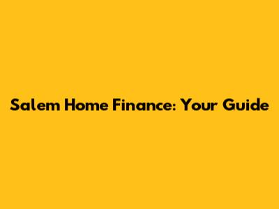 Salem Home Finance: Your Guide