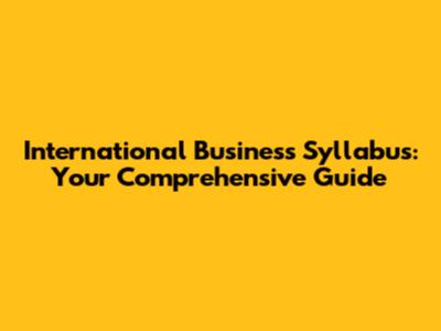 International Business Syllabus: Your Comprehensive Guide