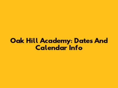 Oak Hill Academy: Dates And Calendar Info