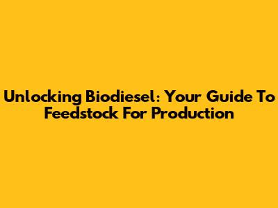 Unlocking Biodiesel: Your Guide To Feedstock For Production