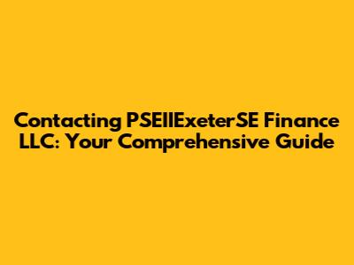 Hey guys! Navigating the world of finance can sometimes feel like trying to solve a Rubik's Cube blindfolded, right? Especially when you're trying to get in touch with a specific financial institution. If you're looking to contact PSEIIExeterSE Finance LLC, you've landed in the right place. This guide is designed to be your compass, leading you through the various ways you can connect with them. We'll cover everything from phone numbers and email addresses to mailing addresses and other potential contact methods. No more frantic Googling or endless waiting on hold – let's get you the information you need, quickly and efficiently. We'll also dive into some common inquiries people have when they reach out, so you're prepared with the right questions. So, buckle up; let's demystify the contact process and make it a breeze! Remember, the goal is to provide you with the most up-to-date and reliable information available, ensuring you can connect with PSEIIExeterSE Finance LLC without a hitch. This is your go-to resource for all things related to contacting them. Let's get started!