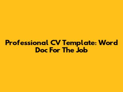 Professional CV Template: Word Doc For The Job