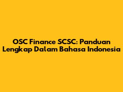 OSC Finance SCSC: Panduan Lengkap Dalam Bahasa Indonesia