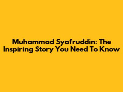 Muhammad Syafruddin: The Inspiring Story You Need To Know