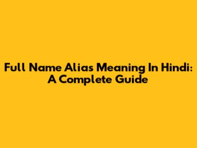 Full Name Alias Meaning In Hindi: A Complete Guide