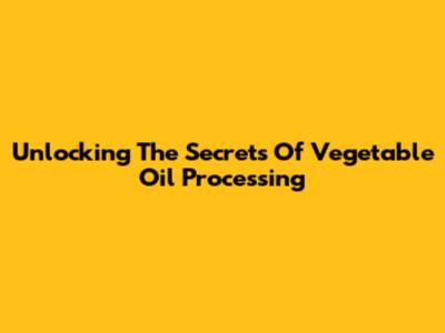 Unlocking The Secrets Of Vegetable Oil Processing