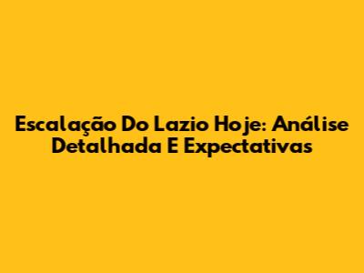 Escalação Do Lazio Hoje: Análise Detalhada E Expectativas