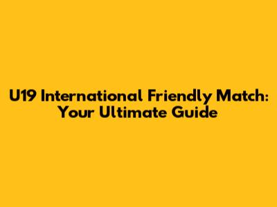 U19 International Friendly Match: Your Ultimate Guide