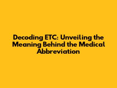 What Does ETC Stand For in Medical Terms?