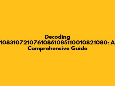 When faced with a numerical sequence like 10831072107610861085110010821080, there are several avenues to explore. Let's consider some of the most common interpretations: