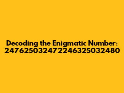 Have you ever stumbled upon a number so large and seemingly random that it just stops you in your tracks? Well, 247625032472246325032480 is one of those numbers. At first glance, it might seem like a meaningless string of digits, but numbers like these often hold hidden significance, whether they're used as identifiers, keys, or even just random seeds in complex systems. In this article, we're going to break down this massive number and explore some of the ways it might be used or interpreted. So, buckle up, guys, and let's dive into the fascinating world of big numbers!