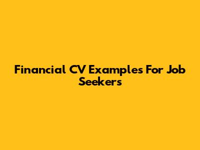 Financial CV Examples For Job Seekers