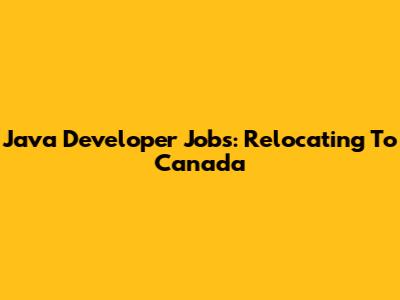 Java Developer Jobs: Relocating To Canada