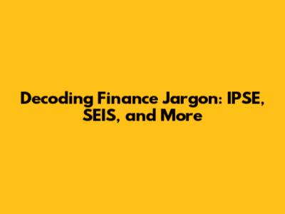 Navigating the world of finance can sometimes feel like trying to decipher a secret code. With acronyms and specialized terms popping up everywhere, it's easy to get lost in the jargon. In this article, we're going to break down some of these terms, focusing on IPSE, SEIS, and other related concepts, to help you understand what they mean and how they apply in the financial landscape. So, let's dive in and demystify some of the finance lingo!