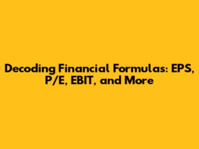 Understanding financial formulas is crucial for anyone involved in investing, managing a business, or simply trying to make sense of the financial world. Key metrics like Earnings Per Share (EPS), Price-to-Earnings Ratio (P/E), and Earnings Before Interest and Taxes (EBIT) provide valuable insights into a company's profitability, valuation, and overall financial health. In this article, we'll break down these formulas and more, explaining how they work and why they matter.