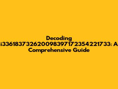 Let's dive into the mysterious string of characters: i336183732620098397172354221733. Okay, guys, I know what you're thinking – what on earth is this? Well, in the vast world of data, codes, and identifiers, seemingly random strings like this pop up all the time. Understanding what they might represent, or how to approach decoding them, can be super useful in various fields, from programming to data analysis. So, buckle up, because we're about to embark on a journey to unravel the potential meanings and implications of this alphanumeric enigma.