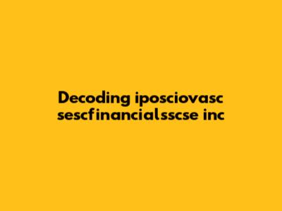 When I look at "iposciovasc sescfinancialsscse inc," the immediate thought is that it could be an abbreviation, an internal code, or perhaps even a combination of different identifiers. The presence of "inc" at the end strongly suggests that we're dealing with a company or incorporated entity of some kind. The other components, however, are much less clear.