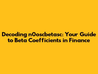 Hey finance enthusiasts! Ever heard the term n0oscbetasc coefficient thrown around and felt a little lost? Don't sweat it – you're in the right place! In this guide, we'll break down the beta coefficient and its role in financial analysis, and investment strategies. We'll make sure you understand how it fits into your world of risk management, portfolio diversification, and stock valuation. Let's dive in and demystify this essential tool! It's super important for navigating the choppy waters of the stock market. Buckle up, and let's get started!