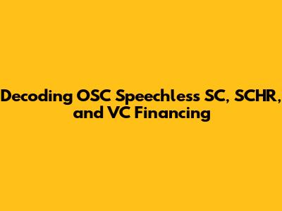 Alright guys, let’s dive deep into the fascinating world of OSC Speechless SC, SCHR, and VC financing. This stuff can seem like alphabet soup at first, but trust me, understanding these concepts can be a game-changer, especially if you're involved in startups, investments, or just curious about the financial landscape. So, grab your favorite beverage, and let’s get started!