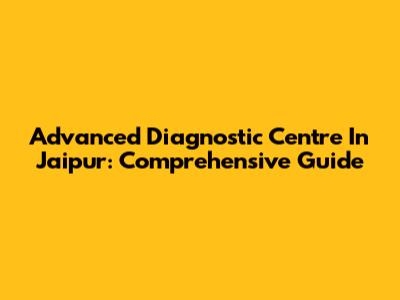 Advanced Diagnostic Centre In Jaipur: Comprehensive Guide