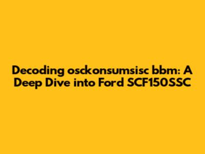- It's also possible that the entire string is an internal project code used by Ford. In this case, "osckonsumsisc," "bbm," and "SCF150SSC" could all be elements of a larger internal designation, referring to a specific project, initiative, or development effort within the company. This scenario is less likely if you encountered the term in a customer-facing context.