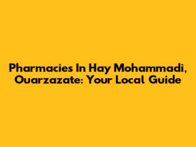 Pharmacies In Hay Mohammadi, Ouarzazate: Your Local Guide