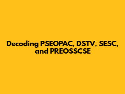 Hey guys! Ever stumble upon a bunch of acronyms and feel totally lost? Well, today, we're diving deep into some of them – PSEOPAC, DSTV, SESC, and PREOSSCSE. Sounds like a mouthful, right? Don't worry, we're gonna break it all down in a way that's easy to understand. Think of it as a decoding session for these terms. Whether you're a seasoned pro or just curious, this guide is for you. We'll explore what each of these acronyms stands for, their significance, and how they might impact you. Ready to get started? Let's jump in and make sense of these alphabet soups!