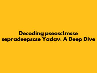 Combining these elements, "pseosclmsse sepradeepscse Yadav" appears to be a reference to a person (Sepradeepscse Yadav) and potentially a project, organization, or technical term (pseosclmsse) related to their work in computer science and engineering. Without more context, it's difficult to definitively determine the meaning of "pseosclmsse," but we can make educated guesses and explore possible avenues of investigation.