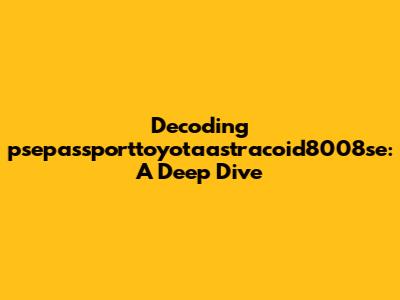 Okay, let's dissect this beast! "psepassporttoyotaastracoid8008se" appears to be a concatenation of different terms, possibly mashed together without much regard for readability. To get a grip on this, we need to separate it into smaller, more manageable chunks. We can start by identifying potential keywords within the string. Let's consider each segment individually: