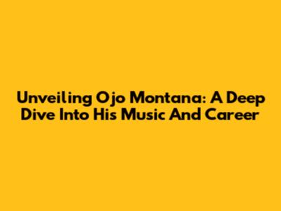Unveiling Ojo Montana: A Deep Dive Into His Music And Career