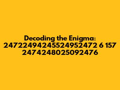 Alright guys, let's dive into this mystery number! When we encounter a string of digits like 24722494245524952472 6 157 2474248025092476, our first instinct might be to scratch our heads and wonder what it all means. Is it a code? A serial number? A random collection of numbers? Well, it could be any of those things, or something else entirely! The key here is to break it down and look for patterns or context. Understanding the nature of such a sequence often requires understanding the context in which it appears. For instance, if you found this number in a database, it could be an identifier for a specific record. If it's part of a larger document, it could relate to a date, time, or some other quantitative measure. The spaces within the sequence, like "6 157," might suggest that the number is segmented for readability or to delineate different parts of a larger code. Without more context, it's a bit like trying to solve a puzzle with most of the pieces missing. We can, however, explore common scenarios where long numbers like these are used. For example, in the world of computing, long strings of numbers are often used as unique identifiers, cryptographic keys, or hash values. In finance, they might represent account numbers, transaction IDs, or security codes. Even in scientific research, numbers like this could be used to identify specific data points, experiments, or samples. So, the next time you stumble upon a mysterious number like this, remember to look for clues, consider the context, and don't be afraid to ask questions. Who knows, you might just crack the code!