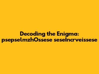 At first glance, psepselmzhOssese seseIncrveissese looks like a jumble of letters, doesn't it? But let's break it down. The prefix "psepselmzh" could potentially allude to something pseudo or false. It might be linked to concepts that are not genuine or authentic. Then we have "Ossese", which might reference something originating from or related to a specific place or culture—perhaps an obscure region or dialect we're yet to uncover. The term "sese" appearing twice could be a deliberate repetition, emphasizing a particular aspect or characteristic. Finally, "Incrveissese" could imply an increasing or intensifying nature, possibly suggesting a process, evolution, or augmentation.